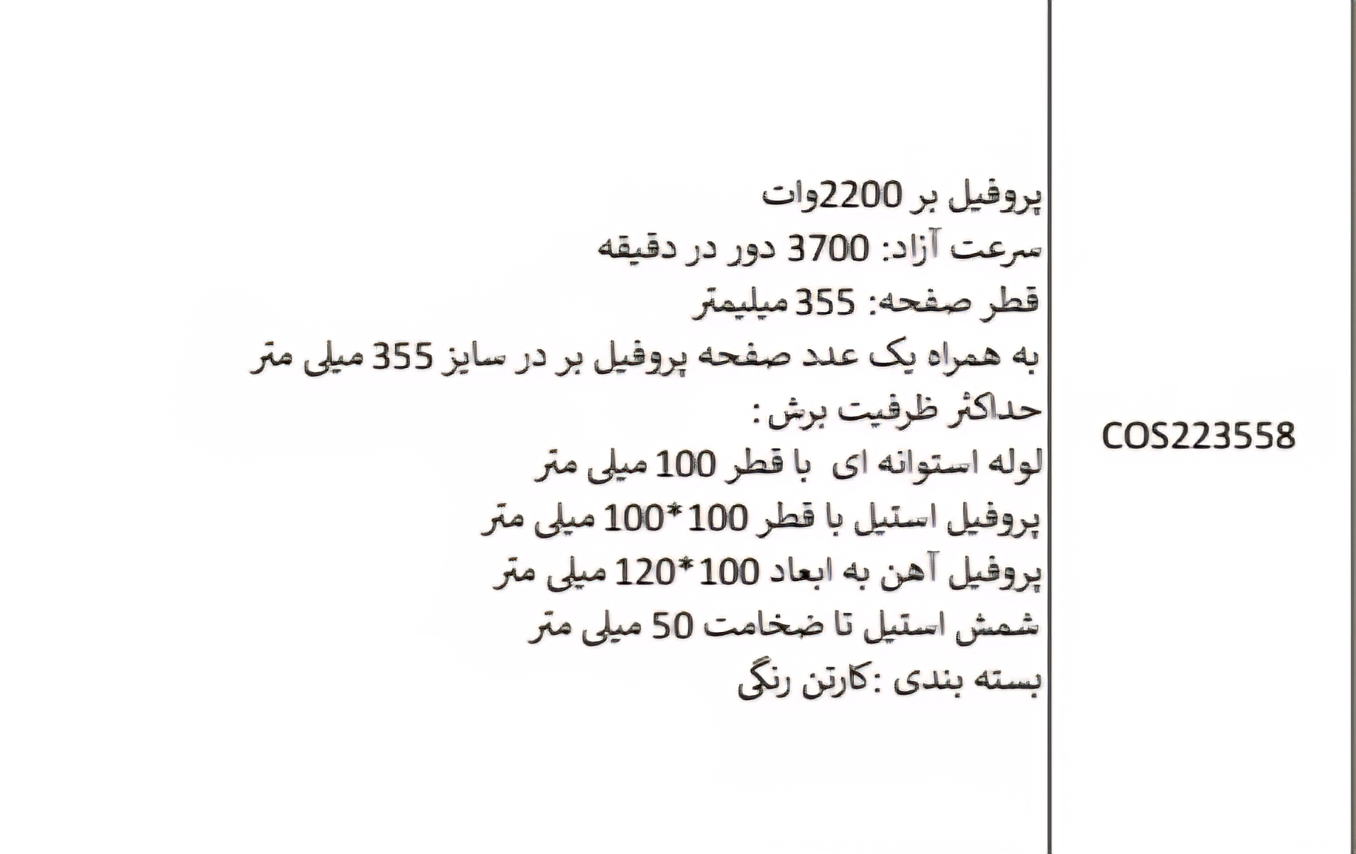پروفیل بر ۲۲۰۰وات اینکو کدCOS223558
