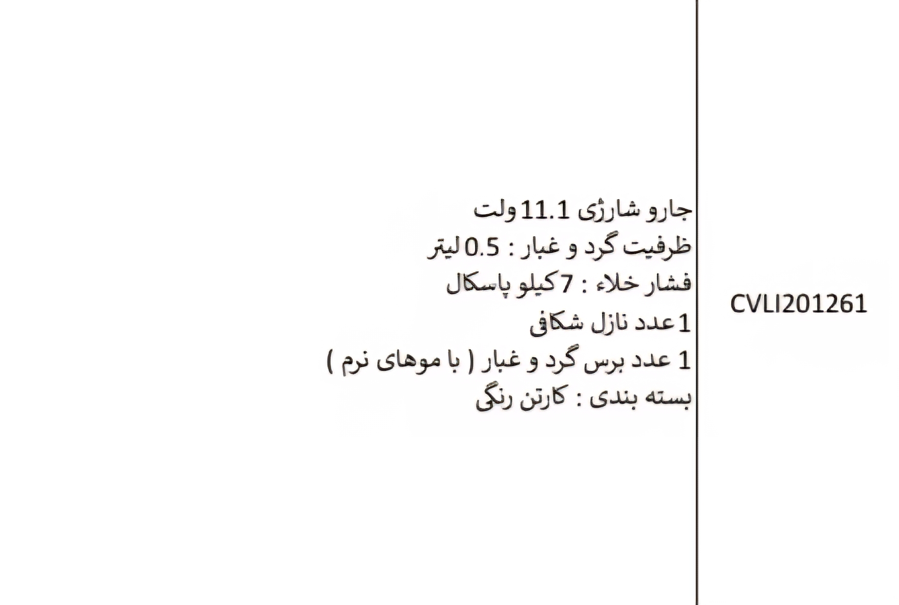 جاروی شارژی اینکو مدل CVLI201261 بدون شارژر وباتری